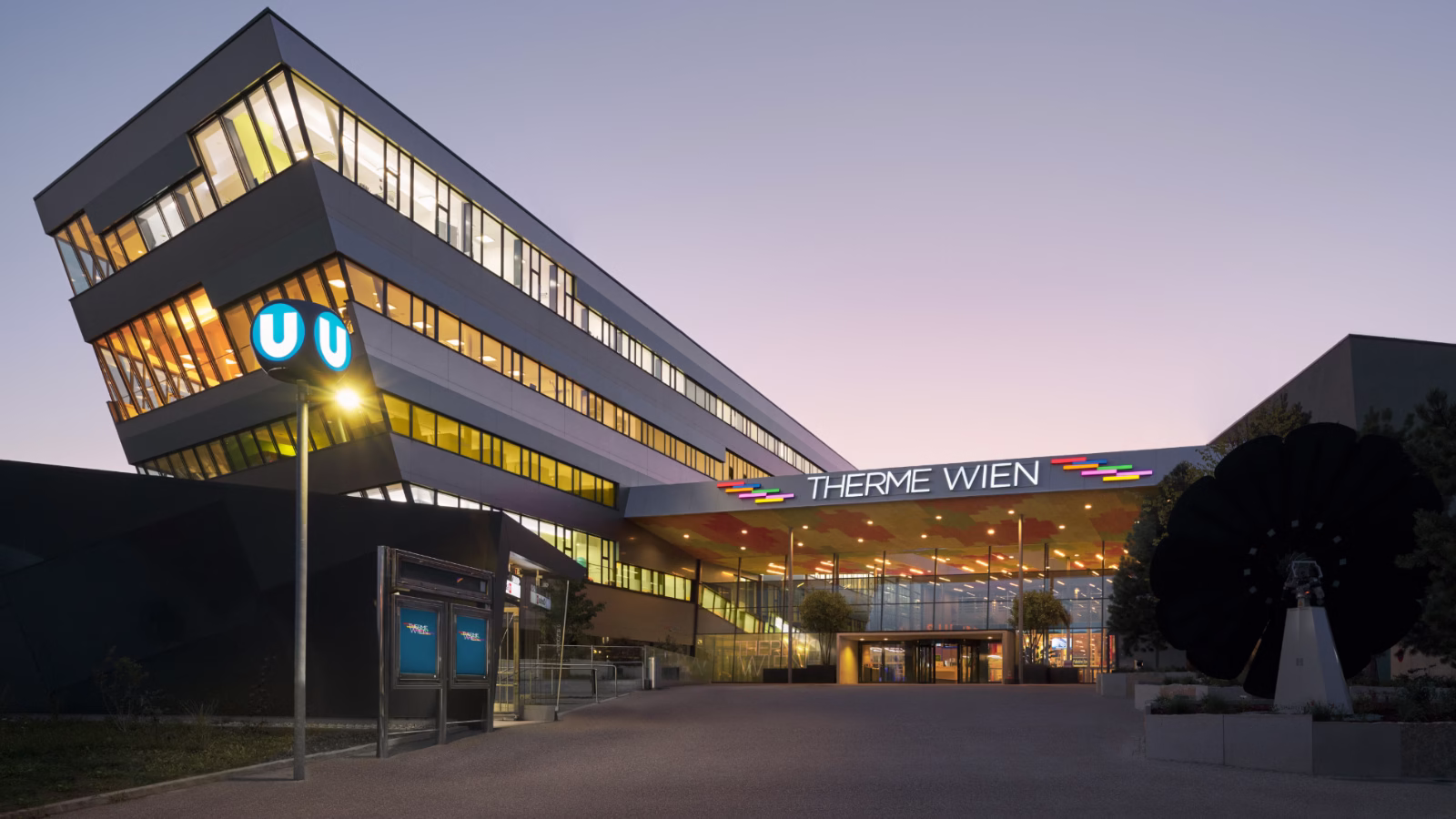 Therme Wien hot springs day spa and warm water fun park in the outskirts of Vienna is the largest city thermal baths resort in Europe. The mineral-rich waters are only 15 minutes on the U-Bahn U1 train from central Vienna.