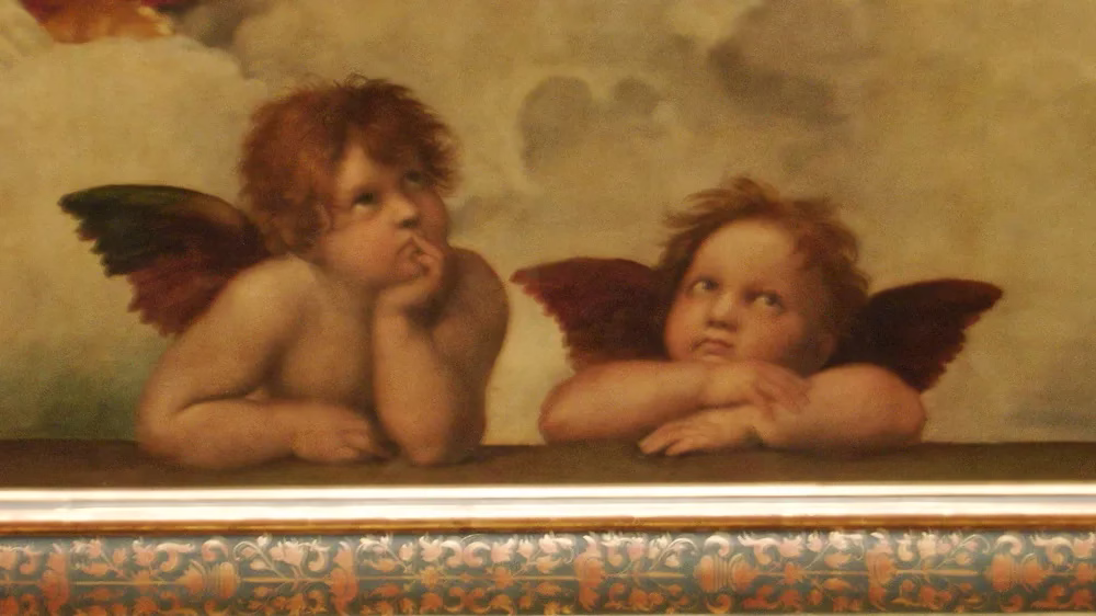 The most famous painting in the Gemäldegalerie Alte Meister (Old Masters Picture Gallery) and Skulpturensammlung (Sculpture Collection) up to 1800 in the Zwinger in Dresden is Raphael’s Sistine Madonna — particularly due to the two little angels at the bottom of the large work.