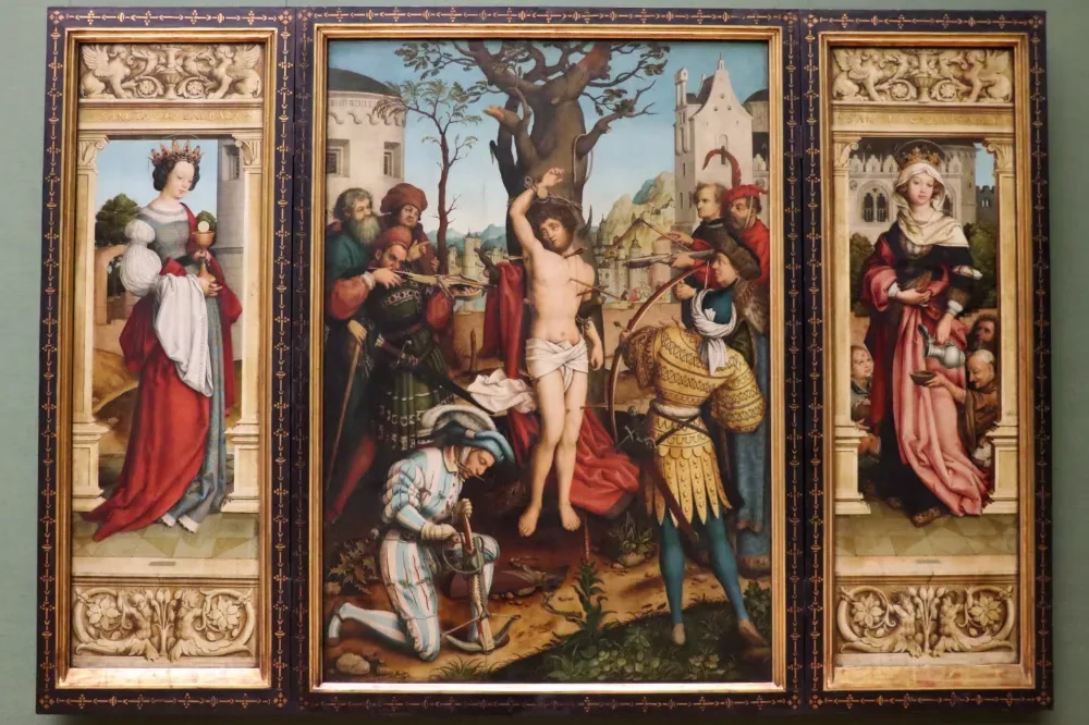 Hans Holbein the Elder: St. Sebastian Altar; Central panel: Martyrdom of St. Sebastian (Sebastiansaltar: Martyrium des hl. Sebastian), 1516, in the Alte Pinakothek in München.