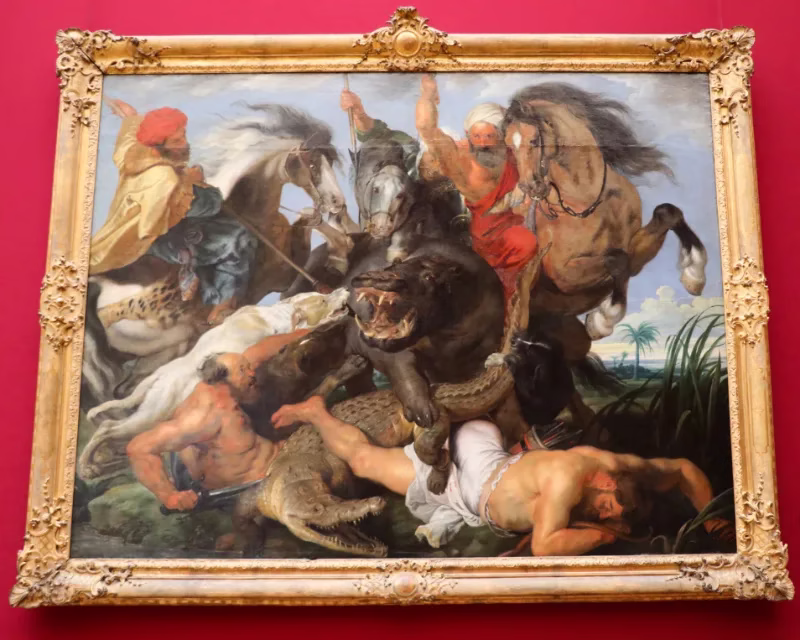 Peter Paul Rubens: Hunt Scene with Hippopotamus and Crocodile (Jagd auf Nilpferde und Krokodil), c. 1616, in the Alte Pinakothek in München