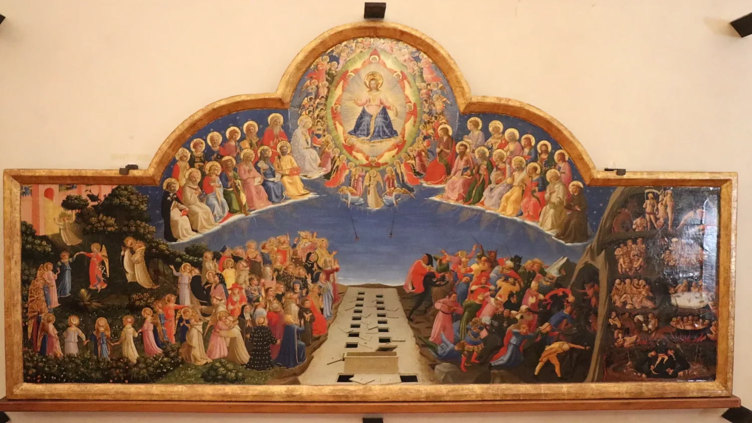 Last Judgment (Giudizio universale, ca. 105 x 210) is an early work and dated between 1425 and the more likely 1431. It is an unusual shape due to it original location in the convent of Santa Maria degli Agneli.