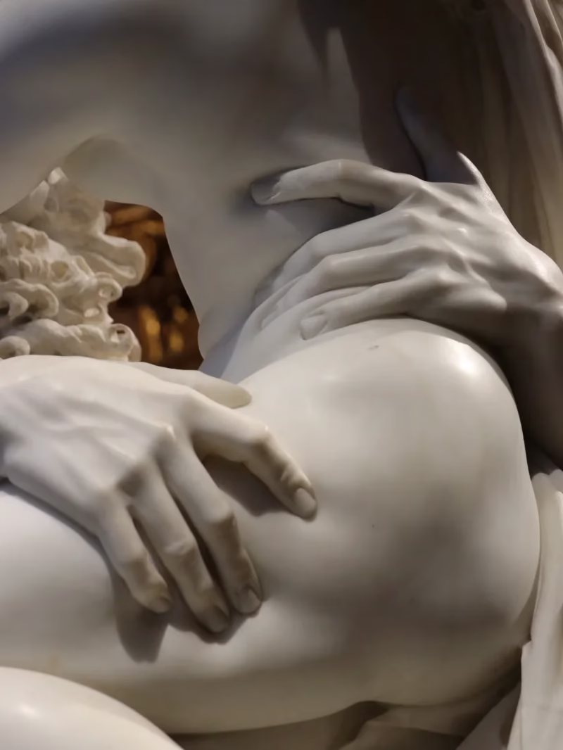 The detail in the sculpture is incredible and particularly famous for the tears in Proserpina’s face and the indentures of the flesh where Pluto holds her.