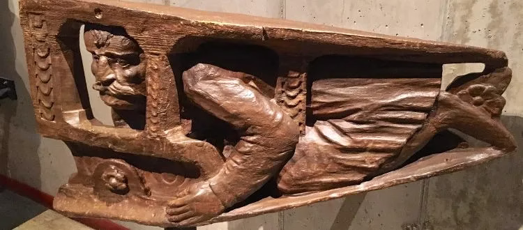 The Polish were major enemies of the Swedes so a sculpture on the Vasa showed how a Polish nobleman cowardly hide under a table. To add further insult, the nobleman directly faced the lavatories. A copy displayed next to the boat shows the detail of this sculpture.
